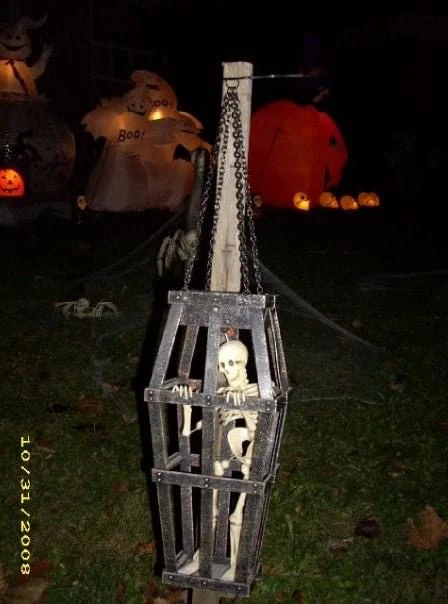 - Similar to the Gotta Go Caged Skeleton, this item can either be used standing or hung up.