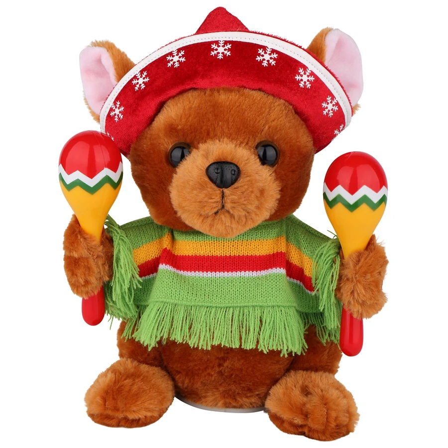 The Christmas Chihuahua is an animated plush made in 2017. He wears a green fabric scarf with red and yellow stripes, and a sombrero. He holds red maracas in his hands. When activated, he dances to "The cup of life".