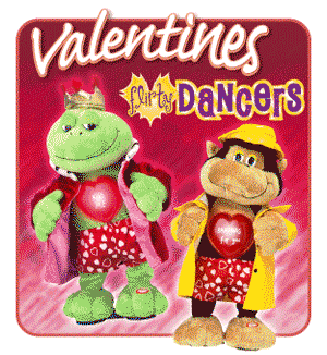 The Flirty Flashers (also known as the Flirty Dancers) are animated animals in robes made in 2005-2014, and brought back again in 2017-present. Each one dances and opens and closes its robe, revealing a (sometimes flashing) heart with a Valentine's message on it while a popular song plays, except for the Graduation Frog, which is Graduation themed.