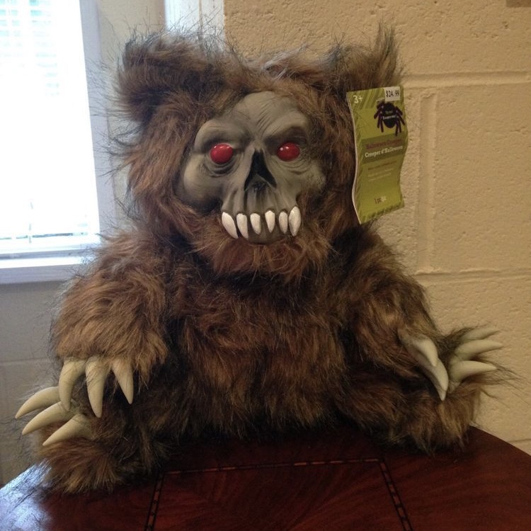 The Halloween Creeper Teddy Bear was a Halloween sound prop made in 2014. It resembled a ferocious Teddy Bear with brown fur, claws, and a visible skull with red eyes and fangs. When activated, it played creepy audio.