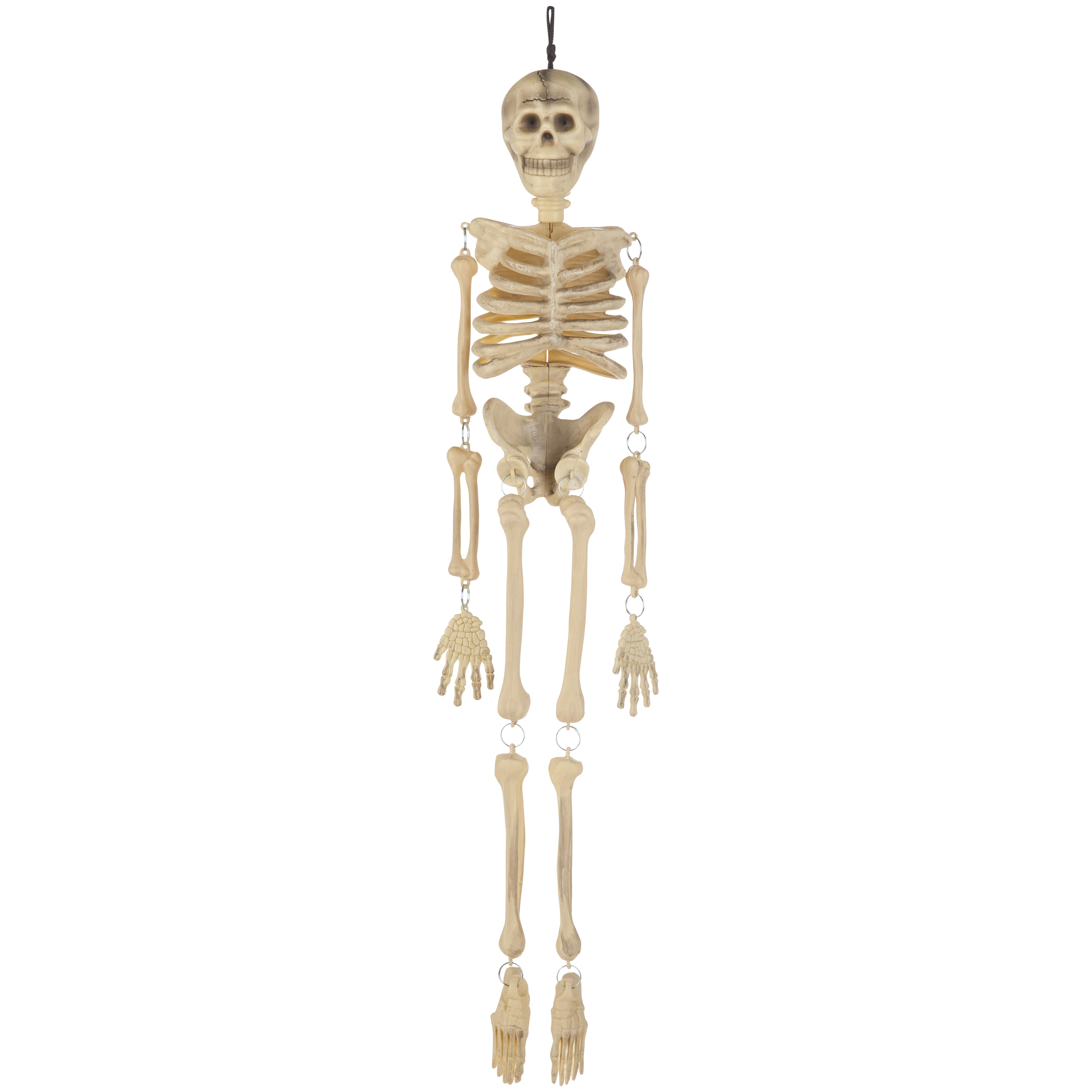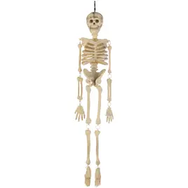 Mr. Bone Jangles is a Halloween decoration made in 2005. He is a plastic (formerly foam) skeleton with a nylon loop on its head for hanging. His limbs are all separately attached by metal rings, making him a very manageable prop for storing.