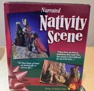 The Narrated Nativity Scene is a light and sound Christmas decoration made in 1999 to 2009. The scene features an angel, Baby Jesus, Mary and Joseph, the 3 wisemen, a donkey, a sheep, and a cow. When activated, the scene narrates the story of the birth of Jesus Christ as the songs "We Three Kings" and "Angels We Have Heard On High" play and dramatic lighting highlights each character one at a time.