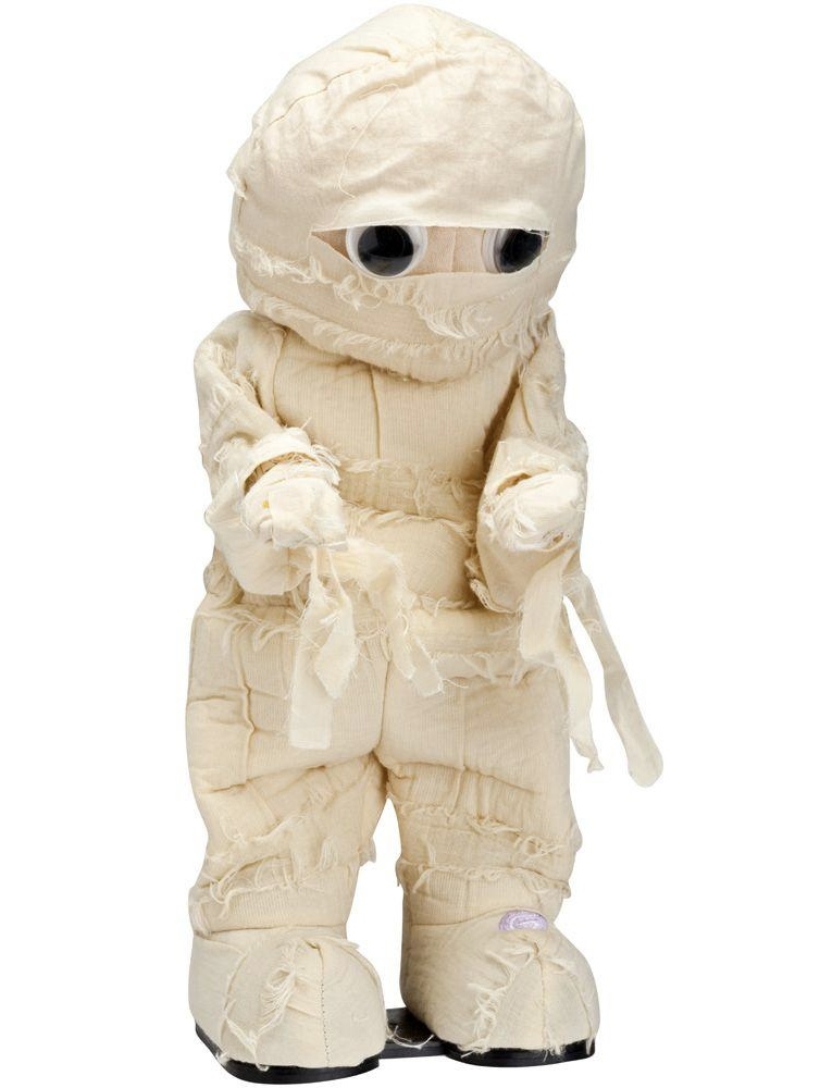 The Thriller Mummy is an animated Halloween figure made in 2010 to present. It resembles a mummy with large eyes and bent arms. When activated, the mummy moves its head and arms while twisting its body to the song “Thriller”.