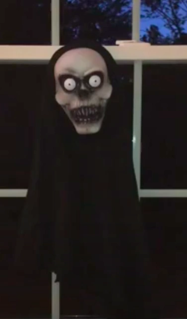 The Window Watcher Ghoul was a halloween decoration made in 2014 for Menard's stores. It featured a gray ghoul face with sharp teeth and white eyes with black pupils. It lights-up and tilts side to side while saying one of several phrases.